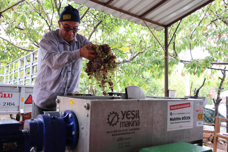 Antalya Büyükşehir Belediyesi, üzüm ve pekmez üretiminin yoğun olarak yapıldığı ilçelere üzüm sıkma makinesi hibesinde bulunuyor. Büyükşehir Belediyesi’nin üzüm sıkma makineleri gelen talepler doğrultusunda mahalle mahalle dolaşarak pekmez üretimi yapan üreticilere destek sağlıyor.