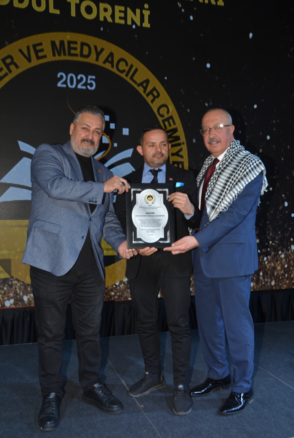 ANIDER’e verilen ödül, Gazeteciler ve Medyacılar Cemiyeti Genel Başkanı Köksal Selçuk ile TUDSİAD Genel Başkanı ve Gazeteciler ve Medyacılar Cemiyeti üyesi Alptekin Şavlı tarafından takdim edildi.